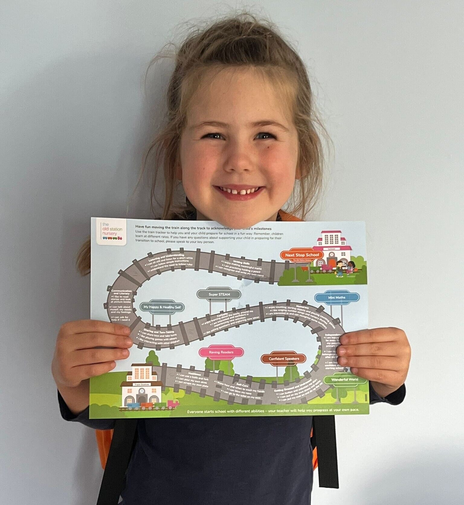 Book a tour with us today and receive your FREE Next Stop School journey tracker and magnet when you visit. You and your child can have fun moving the train along the track to acknowledge your child’s milestones.