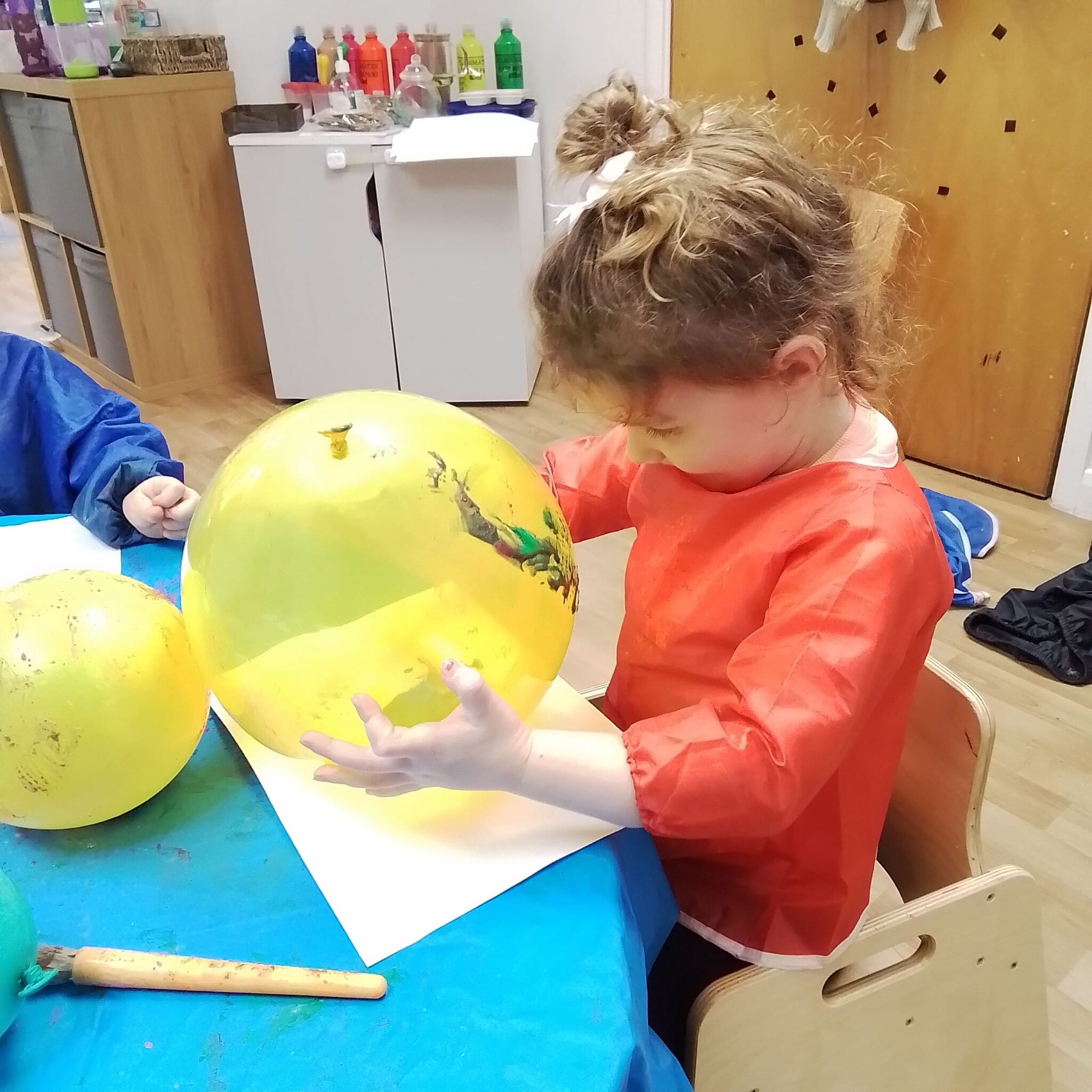 Next, the children engaged in an activity where they used different sized balloons to create the different sized planets. The children discussed each planet and the various colours that they could see.