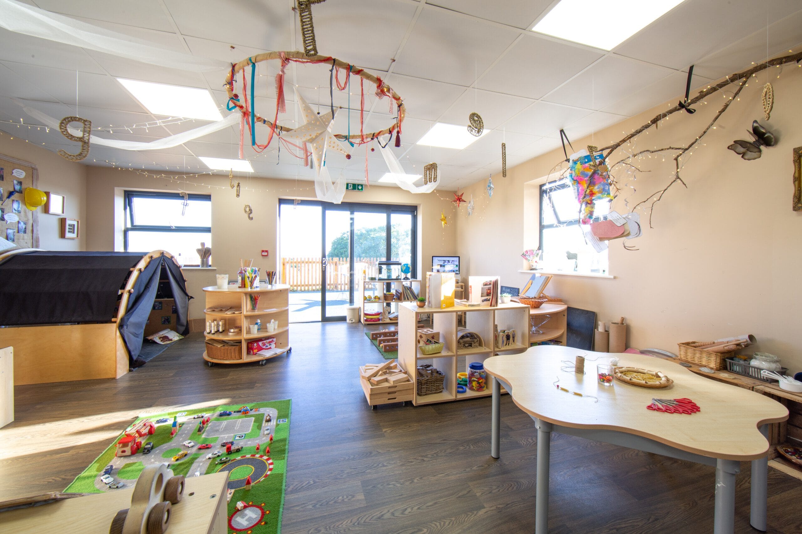 Our Pre-School Unit is thoughtfully designed for our most independent children. Equipped with patio doors providing access to a secure, all-weather outdoor area, they enjoy full autonomy over where and how they play. Children can stay with us in Pre-School until they transition to Reception Class at Primary School, so our team focuses on preparing them for this next step. We emphasise skills like independence in dressing and undressing, sustained focus during activities, empathy, understanding behavioural boundaries, and fostering a can-do attitude—all crucial for a smooth school transition.