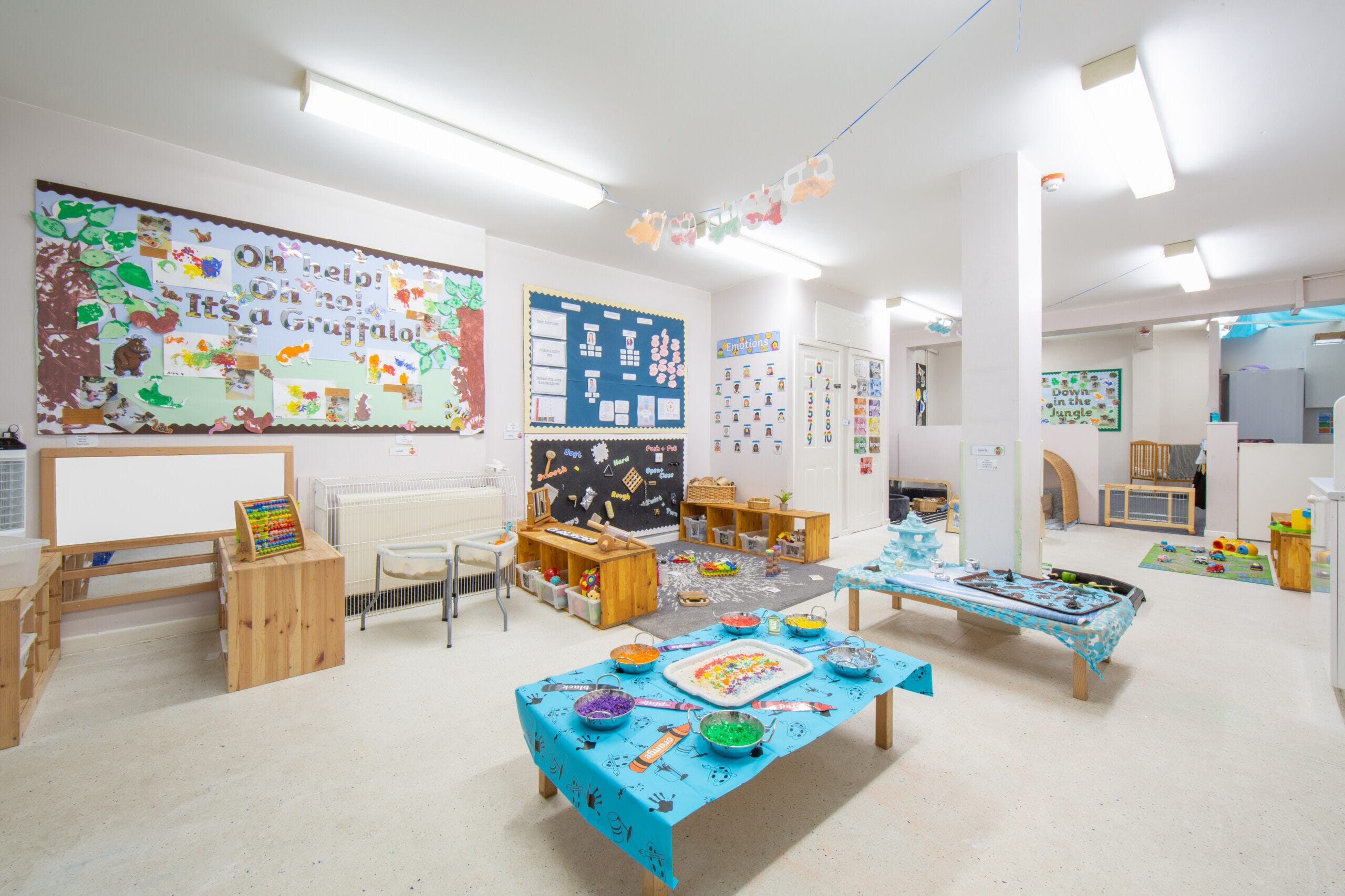 Our nursery environments are designed to support messy play, and we can easily tidy up when it is time for lunch.
